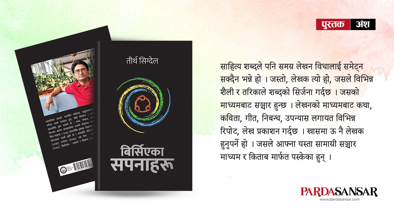 सामाजिक यथार्थ, मानवीय संवेदना, अनुसन्धानमूलक लेखनमार्फत् तथ्यलाई पर्गेल्न सक्ने पत्रकार हुन्, तीर्थ सिग्देल । उनको पत्रकारिता यात्रा २०५० सालदेखि सुरु भएको हो । कथा, निबन्ध, यात्रा संस्मरण, इतिहास विधामा निरन्तर कलम चलाइरहेका उनको लेखनमा समाजका विभिन्न पक्षहरुको स्पष्ट चित्र पाइन्छ । २०७३ सालदेखि पुस्तक लेखनमा पाइला चालेका उनको ‘बिर्सिएका सपनाहरु’ सातौ“ कृति हो । यसअघि जीवनको गति (२०७३), पूर्वको राजनीति (२०७४), मनोनेट (२०७६), एक दिन : समय कथा (२०७७), मनको कैदी (२०७८), बिर्तामोड : उद्भव र विकास (२०८०) प्रकाशित छन् ।