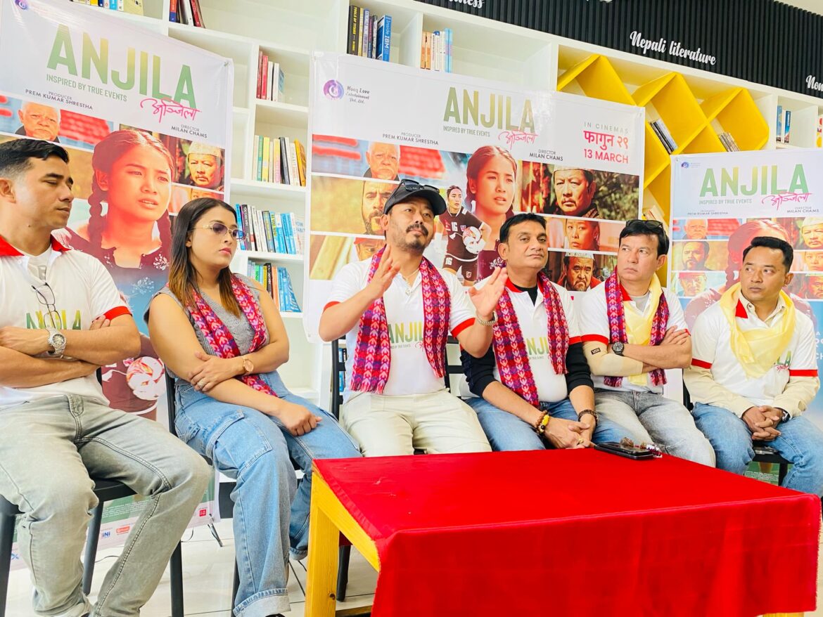 झापाको बिर्तामोडमा बिहीबार पत्रकार भेटघाट गरी निर्माण टिमले फागुन २९ बाट रिलिज हुन लागेको चलचित्र ‘अन्जिला’का बारेमा जानकारी गराएका छन् । एन्जिलाले बाल्यकालदेखि कप्तान बन्दासम्मको संघर्षको कथा चलचित्रमा रहेको निर्देशक मिलन चाम्सले बताए । उनले भने, ‘अन्जिला फुटबलर मात्र होइन, हरेक खेलाडीले खेलाडी बन्नका निम्ति गरेको संघर्षको कथा हो ।’