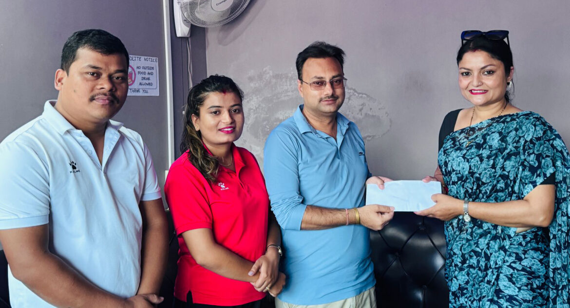 बिर्तामोड । नेपाल पत्रकार महासंघ झापाले स्थापना गरेको ’पत्रकार सहारा उपचार कोष’ मा प्रथम पाइला अभियानकी संस्थापक अध्यक्ष मेनुका ओलीले ११ हजार रुपैयाँ सहयोग गर्नु भएको छ ।