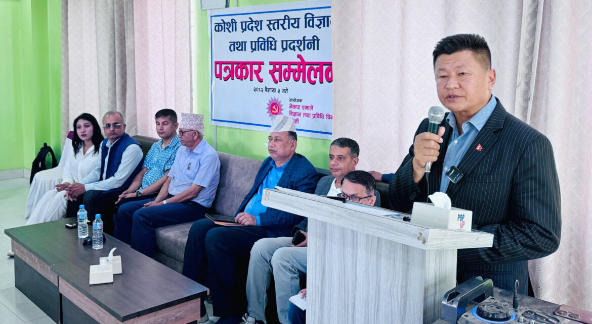 नेकपा एमाले कोशीको विज्ञान तथा प्रविधि विभागको आयोजनामा बिर्तामोडको देवी माविको प्राङ्गणमा आयोजना गरिने विज्ञान प्रदर्शनीमा १ लाख विद्यार्थी सहभागी हुने बुधबार आयोजित पत्रकार सम्मेलनमा जानकारी दिइएको हो । कोशी प्रदेशका १४ वटै जिल्लाबाट विद्यार्थीहरुको सहभागिता रहने उहाँले बताउनुभयो ।
