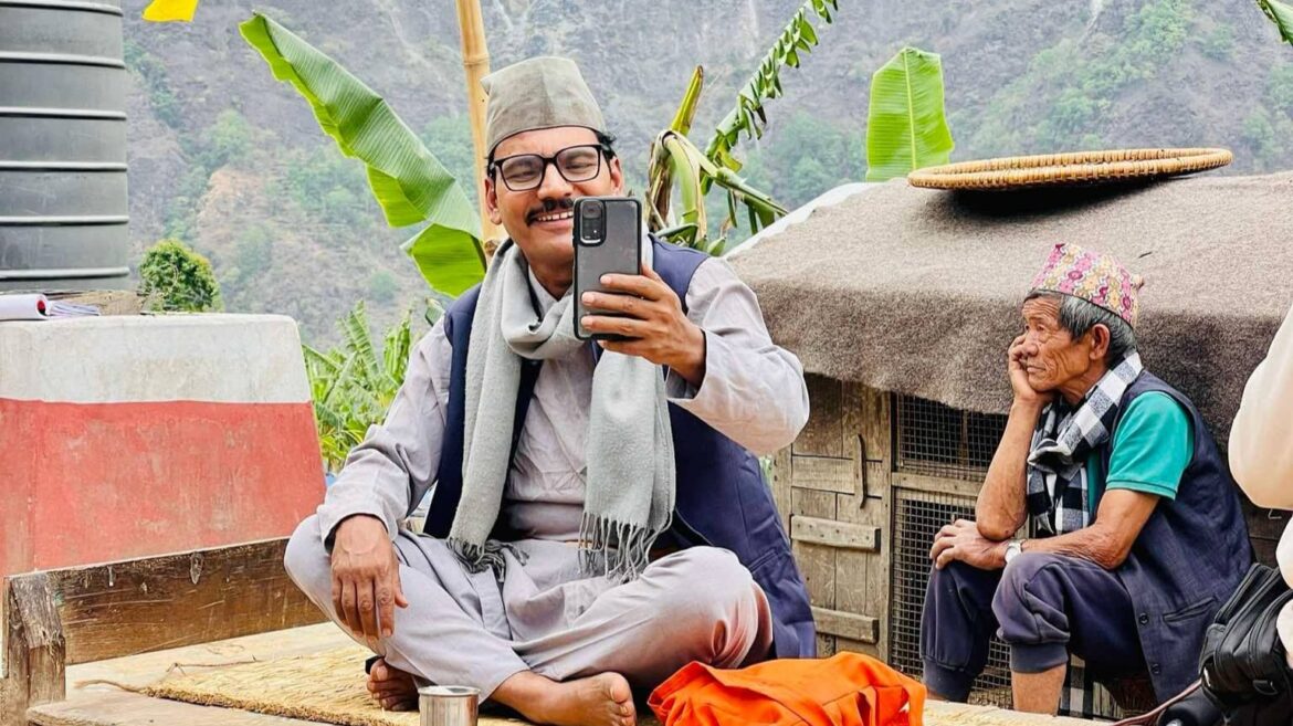 झापा / अभिनेता केदार घिमिरे ‘माग्ने बुढा’को मुखिया लुक्स चलचित्र ‘माइतीघर’को सेटबाट बाहिरिएकाे छ ।