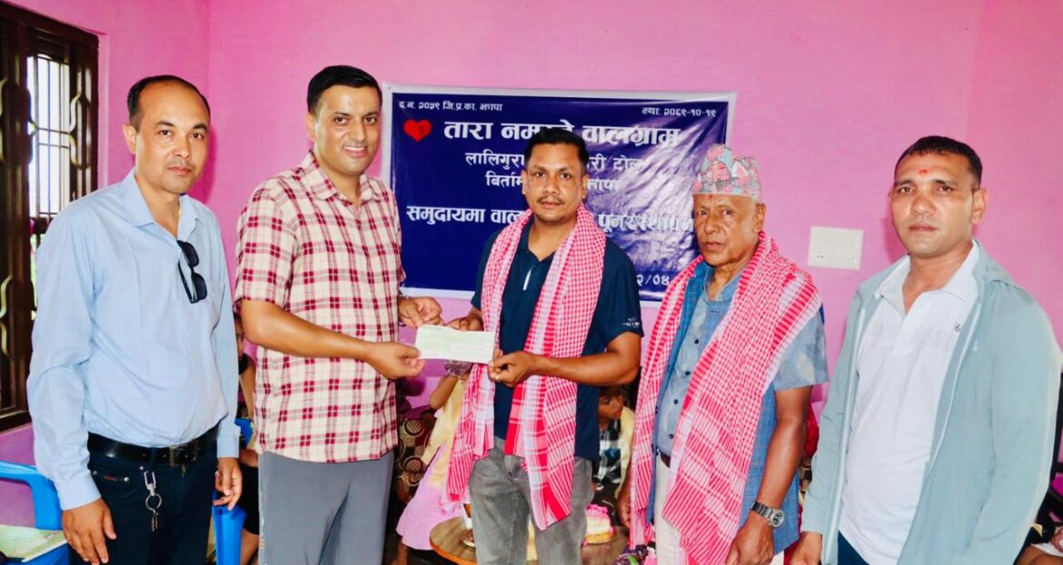 उहाँले शनिबार एक संक्षिप्त कार्यक्रमका बिच बिर्तामोड नगरपालिका वडा नम्बर ४ स्थित झारीमा रहेको तारा नमस्ते बालग्राम र मेघबारीमा रहेको सिद्दीविनायक कर्मयोग भवन निर्माणको लागि रकम सहयोग गर्नु भएको हो ।