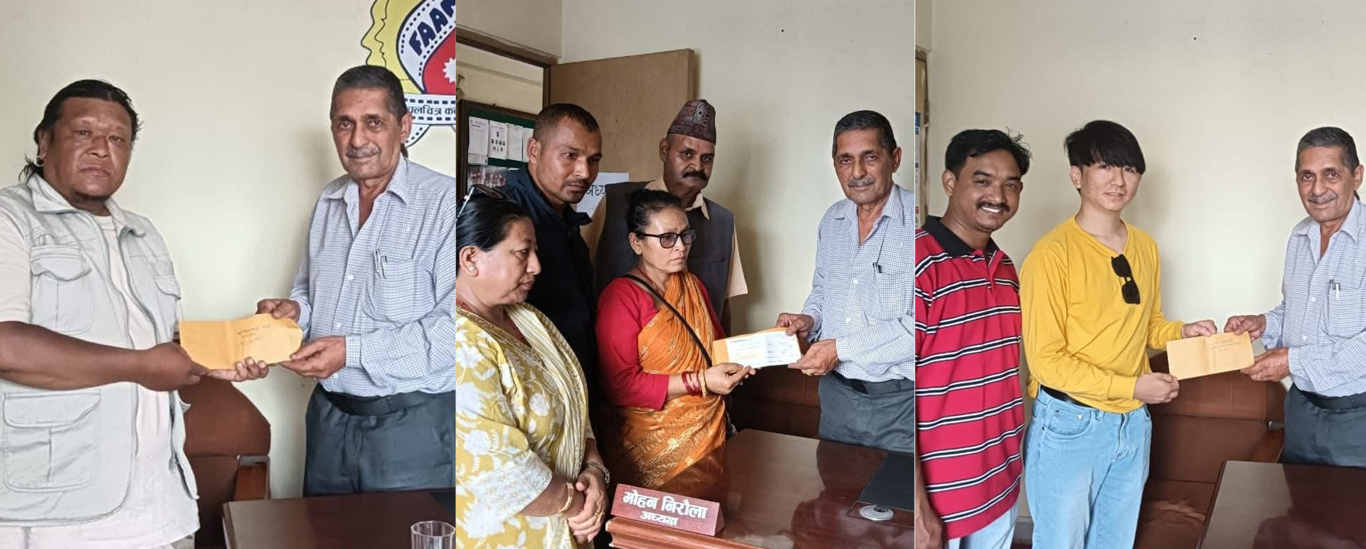 चलचित्रकर्मीप्रति सम्मान र सहानुभूति प्रकट गर्दै भैरवबहादुर थापालाई १ लाख, डिलबहादुर तामाङलाई ३० हजार, नवीन काजी राईलाई ५० हजार, राजकुमार जोशीलाई बीस हजार र स्व.लक्ष्मी श्रेष्ठलाई उहाँको ज्वाइँ कृष्णबहादुर कार्कीमार्फत पच्चीस हजार रुपैयाँ प्रदान गरिएको हो ।