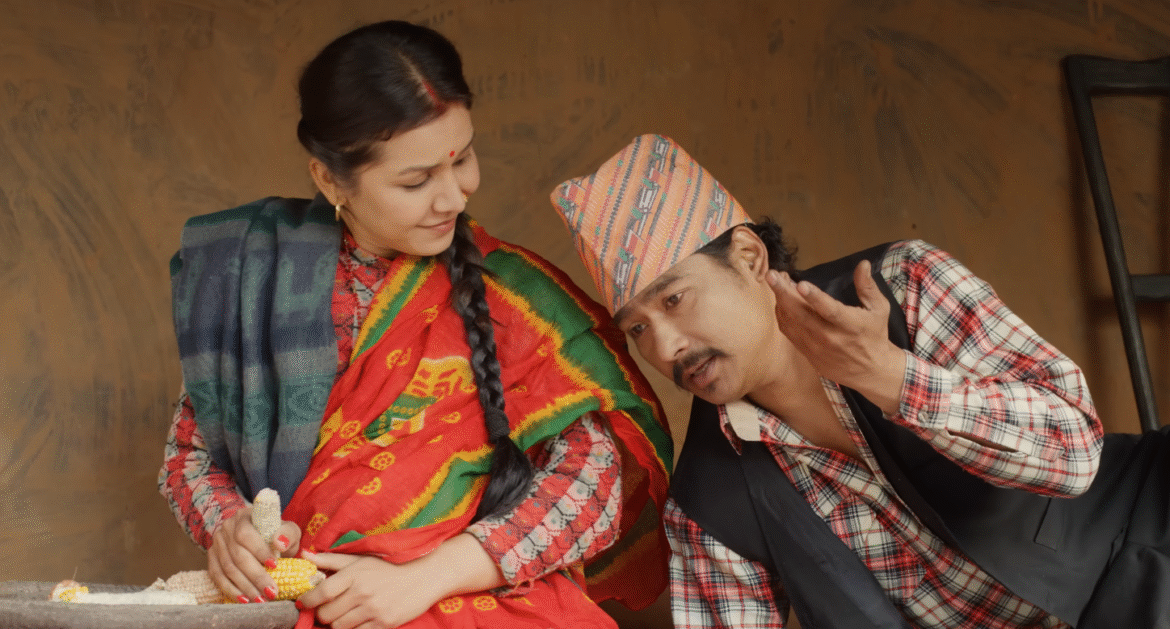 गीतमा अभिनेता साैगात मल्ल र अभिनेत्री बेनिशा हमालकाे प्रेमिल भावसहित नेपाली मौलिकता देख्न सकिन्छ ।  यसअघि सार्वजनिक ट्रेलरले समाजमा विद्यमान गरिबी, बेरोजगारी, पारिवारिक झमेलाहरू र सरकारी उदासीनतालाई हास्य र व्यङ्ग्य शैलीमा प्रस्तुत गर्दै दर्शकको राम्रो प्रतिक्रिया पाएको थियो।