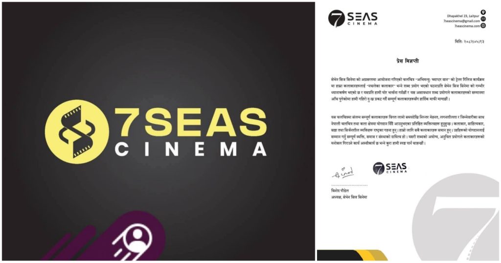 सेभेन सिज सिनेमाले कलाकारहरूको मनोबल गिराउने यस्ता विषयमा ध्यान दिन सम्पूर्णमा अह्वान गरेको छ । उक्त प्रेस विज्ञप्ति सेभेन सिज सिनेमाका अध्यक्ष विनोद पौडेलले जारी गरेका हुन् ।