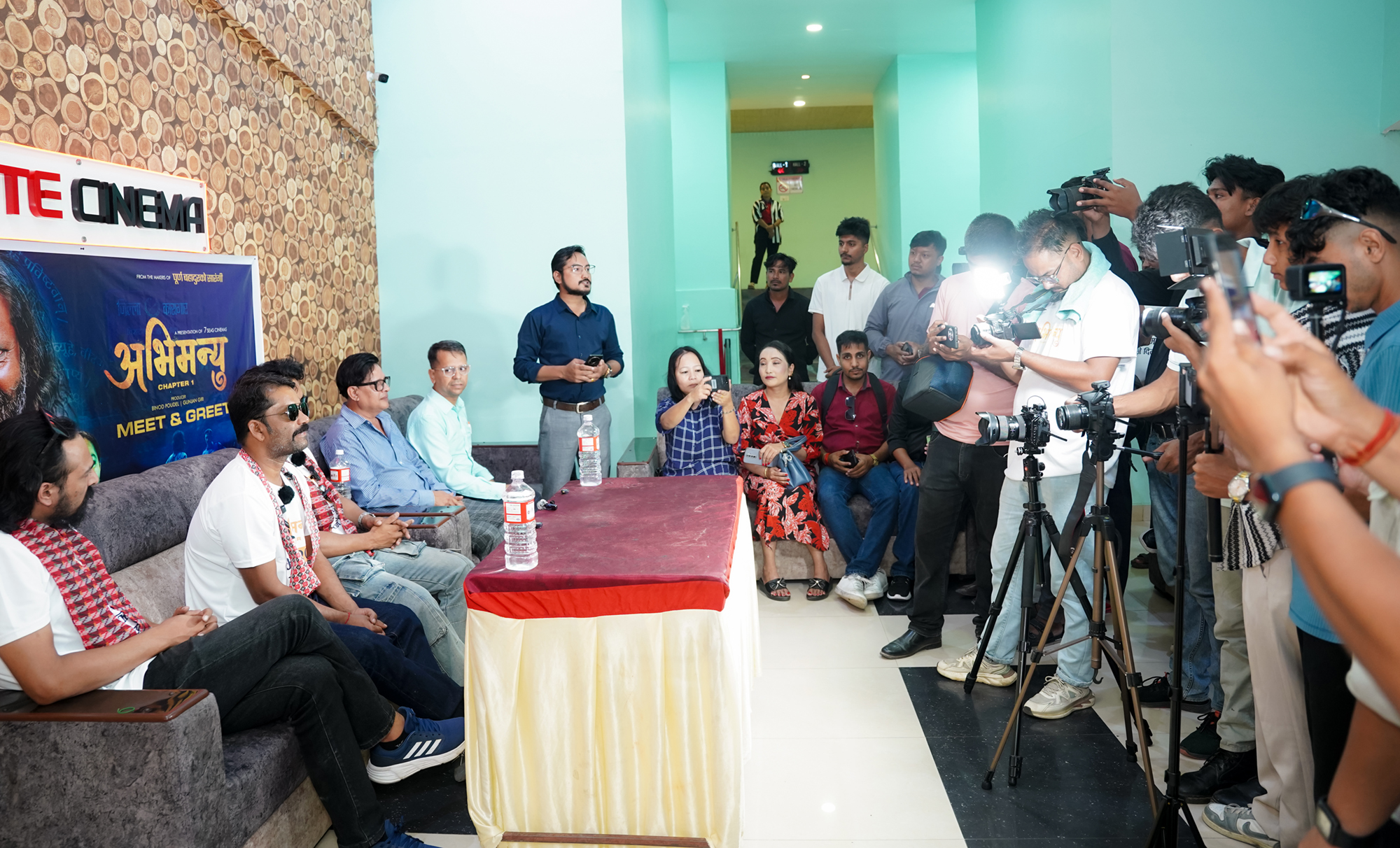 इटहरी । क्राइम थ्रिलर चलचित्र ‘अभिमन्यु’को कोशीबाट प्रेस मिट एन्ड ग्रिट कार्यक्रम आरम्भ गरिएको छ । यही भदौ २७ बाट देशभर प्रदर्शनमा आउन लागेको चलचित्रको युनिटले सोमबार इटहरीको इलाइट सिनेमा हलमा पत्रकारसँग भेटघाट गर्दै चलचित्रका बारेमा जानकारी दिएका छन् ।