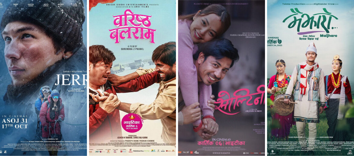 तिहारमा झन् चार वटा फिल्मले प्रतिस्पर्धा गर्ने भएका छन् । रिलिजडेट अघिपछि भए पनि चारवटै फिल्मको मुख्य लक्ष्य भनेको तिहार फेस्टिबल नै हो । सबैभन्दा सुरुमा यही शुक्रबार असोज ३१ गतेबाट ‘जेरी अन टप’ रिलिज हुँदैछ । जसको बुकिङ समेत खुलिसकेको छ । कात्तिक ६ गते भाइटीकाको दिनदेखि प्रदर्शनमा आउने दुई नयाँ फिल्महरु ‘सोल्टिनी’ र ‘वरिष्ठ बलराम’ रिलिज हुँदैछ भने कात्तिक ७ गतेबाट ‘मैझारो’ प्रदर्शनमा आउँदैछ ।