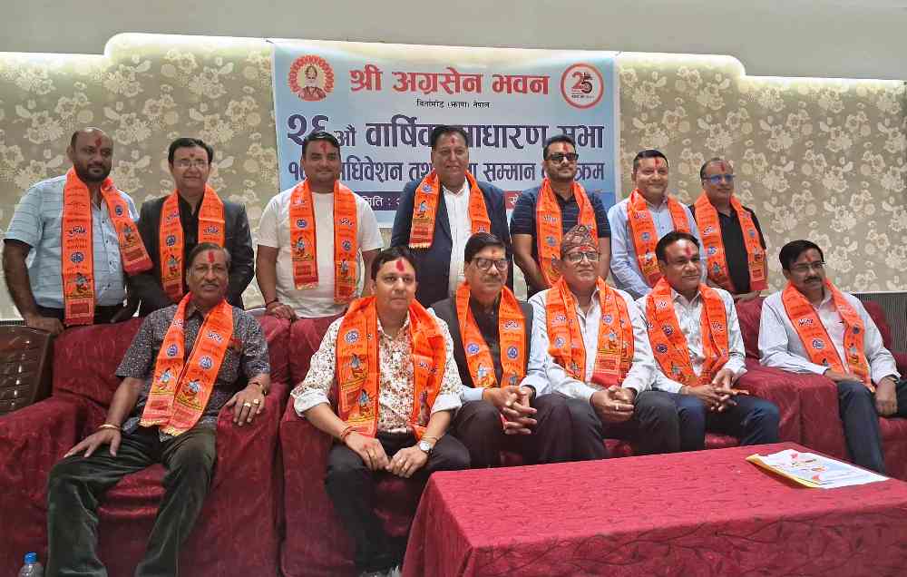 सोमबार अग्रसेन भवनको दोस्रो तलाको नवनिर्मित सभाकक्षमा आयोजित २६ औँ साधारणसभा तथा १० औँ अधिवेशनबाट रमेशकुमार अग्रवालको अध्यक्षतामा १२ सदस्यीय नयाँ कार्यसमिति चयन गरेको हो ।