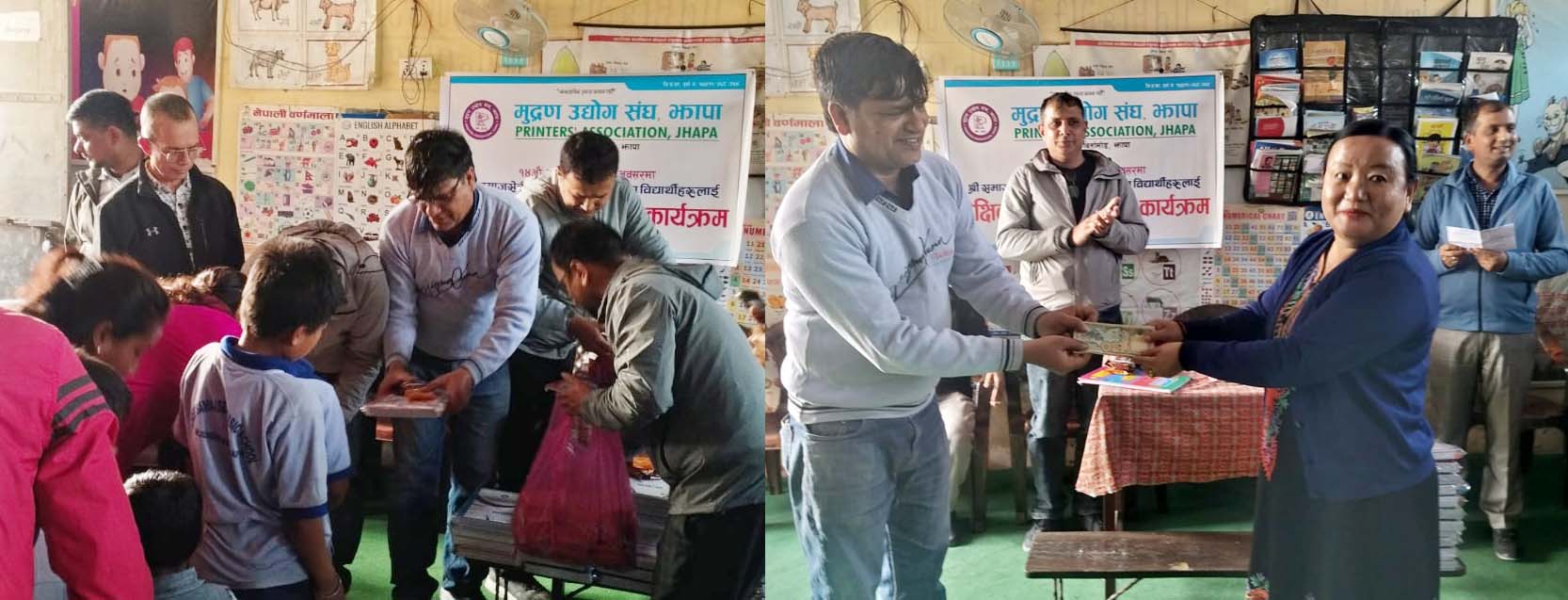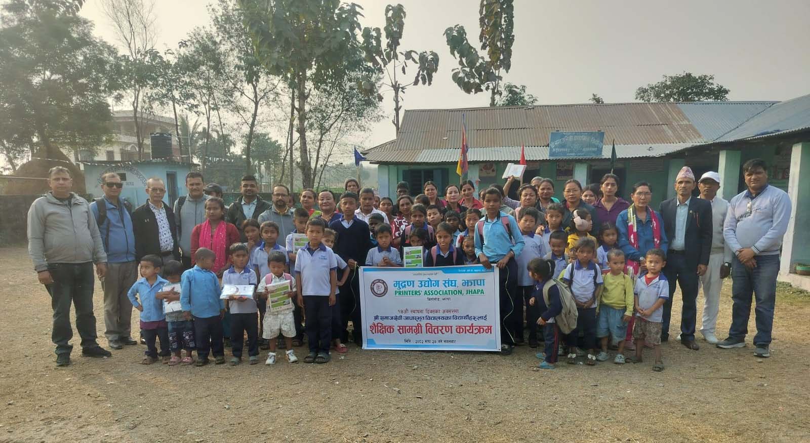 बिर्तामोड । विद्यार्थीहरुसँग खुशी साट्दै मुद्रण उद्योग संघ झापाले आफ्नो १४ औँ स्थापना दिवस मनाएको छ । मंगलबार अर्जुनधारा-५ पानीकलस्थित समाजसेवी आधारभूत विद्यालयका ६० जना विद्यार्थीलाई शैक्षिक सामग्री वितरण गर्दै संघले स्थापना दिवस मनाएको हो ।